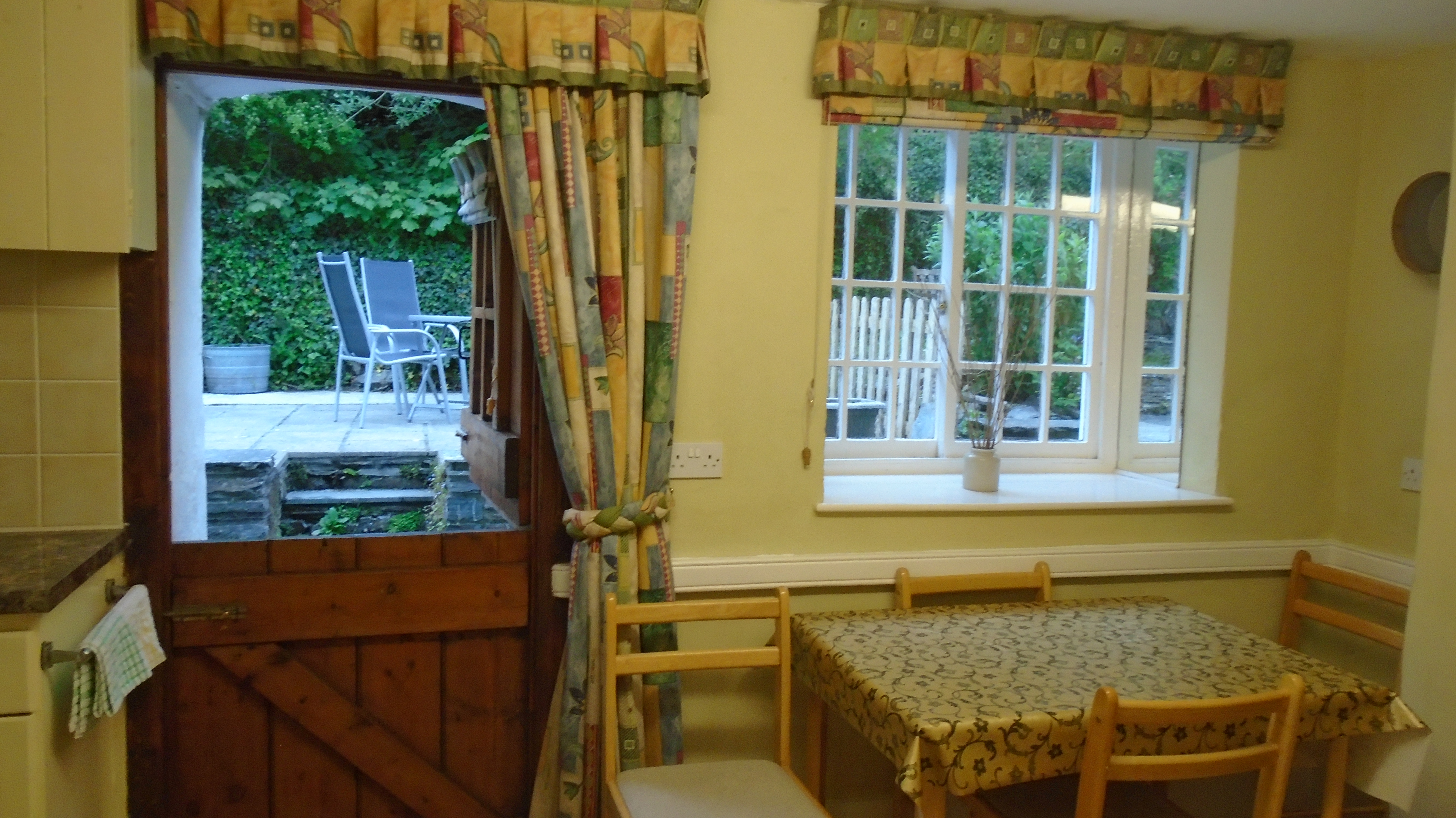 The cottage is accessed by seven steep slate steps down from the road and the entrance to the cottage is via a very narrow front door, although there is a full sized stable door to the rear of the property. There is a sitting room and kitchen/diner on the ground floor with stairs rising up to the first floor where there is a double bedroom with a 4’6” four poster bed, a second bedroom with a 3’ single bed and a bathroom with shower over the bath and WC. All leading off a central landing. To the rear of the property is a paved patio with garden furniture which is accessed by three steep slate steps. Heating by Woodburner and night storage heater in the lounge and night storage heaters in bedrooms.